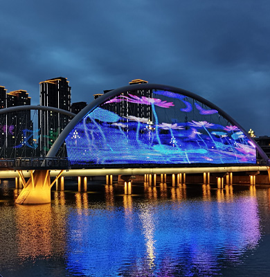 琼结LED灯具:因其高效节能、长寿命及色彩丰富等特点,被广泛应用于现代河道亮化项目中。